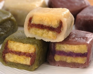 さつまいもと小豆のあんをだんご生地で蒸した、熊本を代表する郷土菓子。