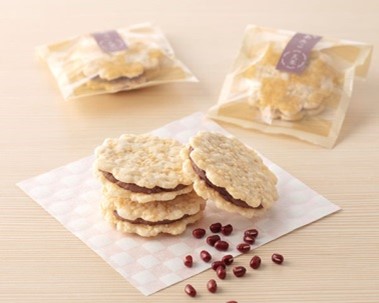 お米の粒感を残し香ばしく焼き上げたお煎餅に、北海道産の小豆を挟んだあまじょっぱい新感覚のお煎餅。