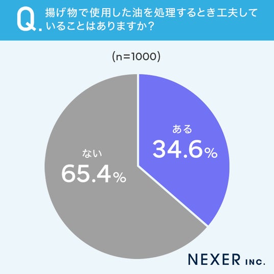 ■34.6%が、揚げ物で使用した油を処理するときに工夫していることが「ある」