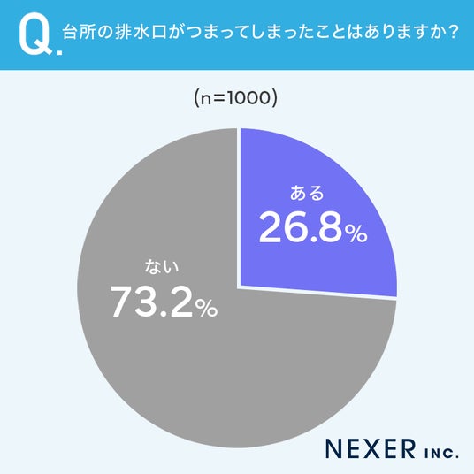 ■26.8%が、台所の排水口が「詰まってしまったことがある」