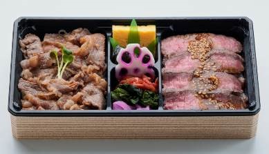 〈味の梅ばち〉米沢牛 ピリ辛焼肉とステーキ弁当 2,160円 各日限定10