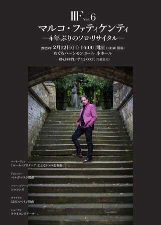 『マルコ・ファティケンティ コンサートVol.6』が2023年2月12日 (日)にめぐろパーシモンホール 小ホール(東京都目黒区八雲1-1-1)にて開催されます。