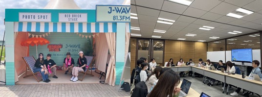「GREENROOM FESTIVAL」のJ-WAVE出展ブース、J-WAVE本社で行う全体ミーティングの様子