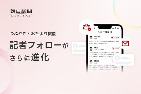 株式会社朝日新聞社(代表取締役社長:角田克)が運営するニュースサイト「朝日新聞デジタル」(https://www.asahi.com/)は、先日リリースした記者フォローにおいて、新たに「つぶやき」機能と、「おたより」機能をリリースしました。
