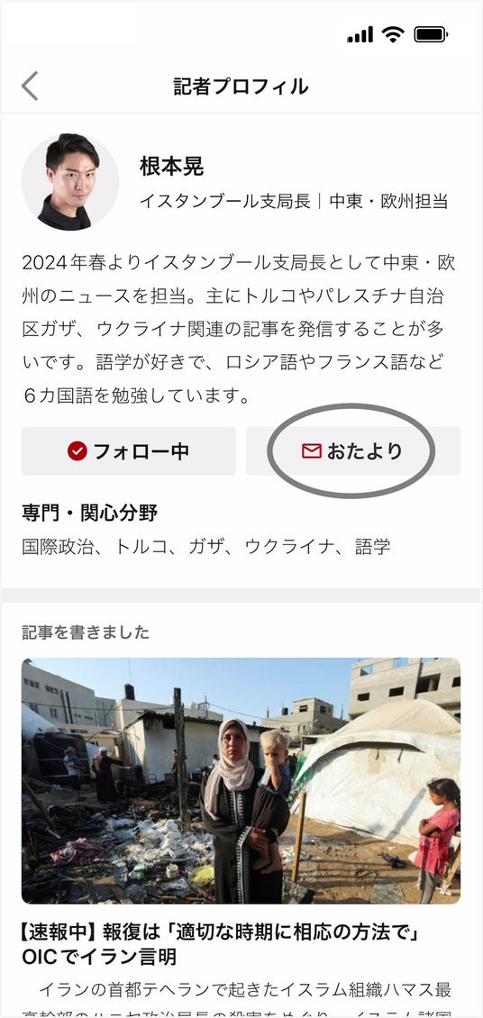 ※フォローできる記者や、おたよりを送ることができる記者は順次拡大中です。