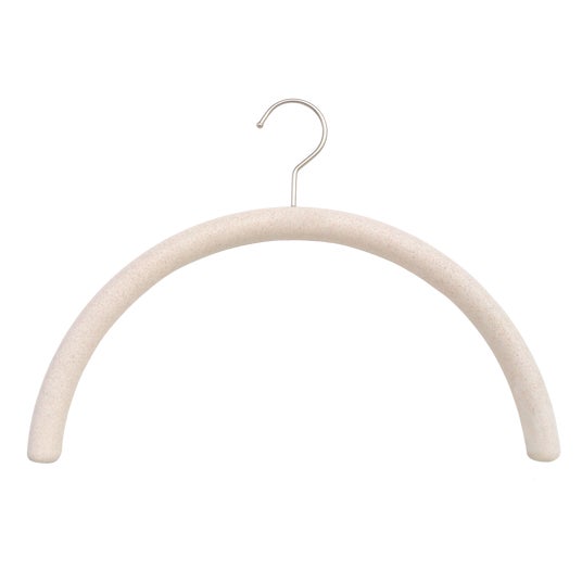お米のもみ殻を一部使用し、ポリプロピレンを配合して強度を持たせたバイオプラスチック製ハンガー。アーチ形状により、ニットやTシャツの型くずれを防ぎます。