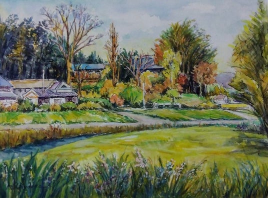 ハローカルチャー1 下岡美智子「まほろばの里 秋景」 水彩画 6号 132,000円