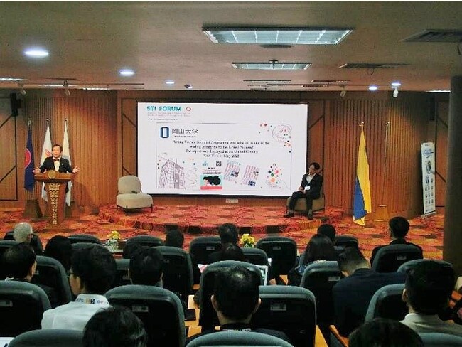 "The Role of University Collaboration within ASEAN+3 Framework on Innovation and Industry Acceleration Ecosystem"をメインテーマとして約80人が参加し開催された今回の会議では、1日目の最初のセッションに那須学長が登壇。"Human Resource Development Programme in Collaboration with UNCTAD and The Role of Academia for Comprehensive Strategy for the Vision for a Digital Garden City Nation"と題して、本学が国連貿易開発会議(UNCTAD)と連携して実施しているSTI for SDGs分野での若手女性研究者の育成プログラムや、那須学長が総括アーキテクトとして全体設計に携わる岡山県吉備中央町の「デジタル田園健康特区」プロジェクトについてプレゼンテーションし、会場からは多くの関心が寄せられました。