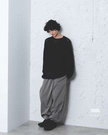 第一弾のリリースは二段階で着脱可能なデタッチャブルブルゾンと、ミリタリーの要素を取り入れながらも美しく落ち感のあるデタッチャブルパンツに加え、WISMのみで展開のメッシュニット。