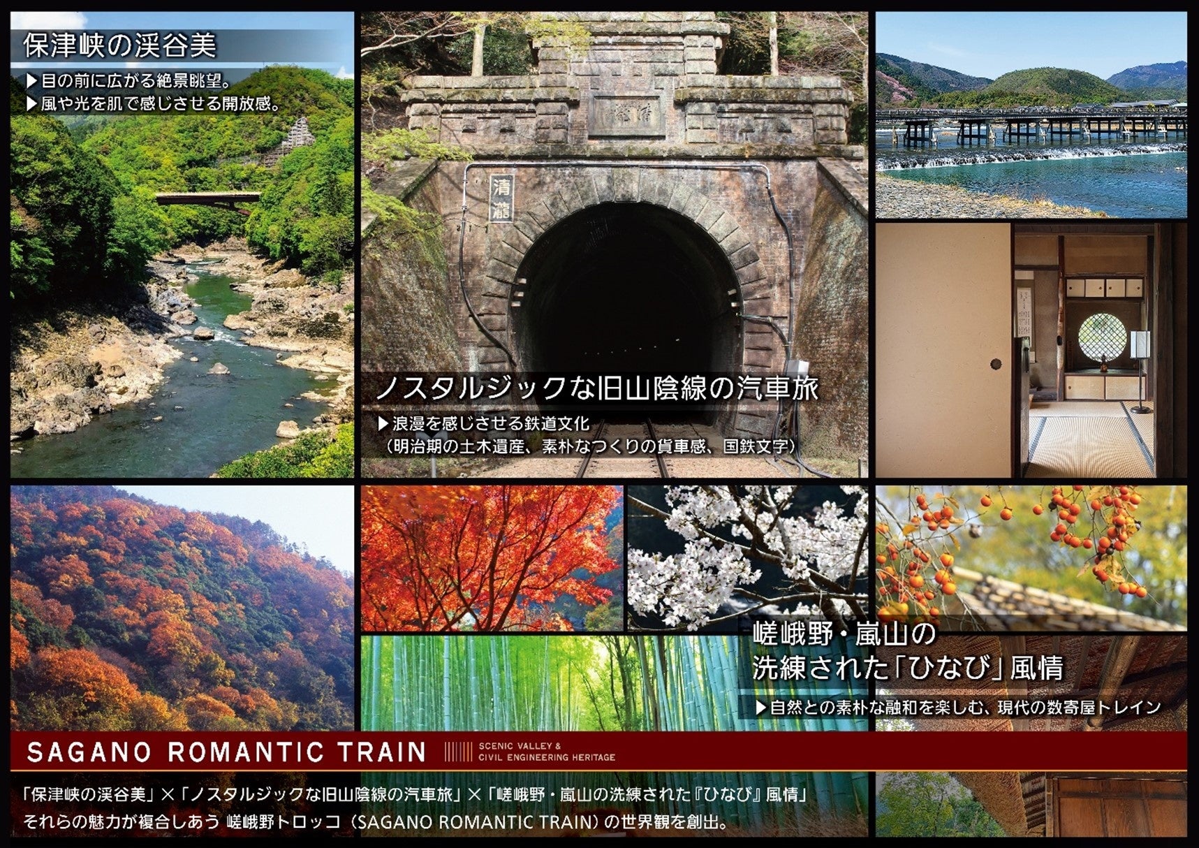 『ひなび』風情」、それらの魅力が複合しあう嵯峨野トロッコ(SAGANO ROMANTIC TRAIN) の世界観を創出