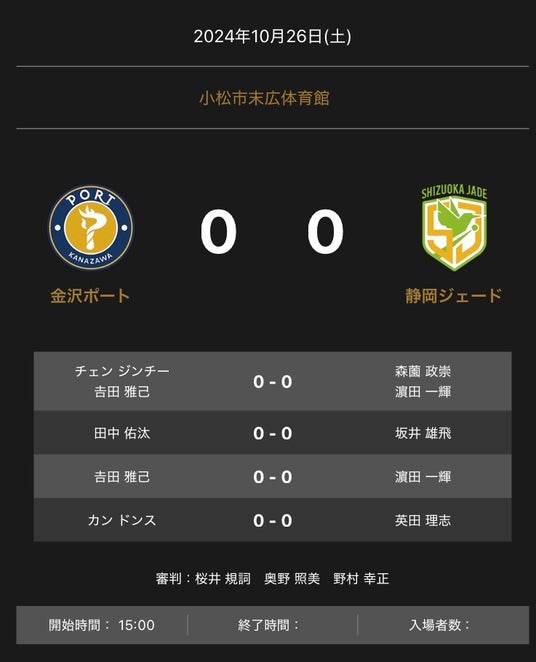 ノジマTリーグ 2024-2025シーズン 公式戦 10月26日開催の「金沢ポート vs 静岡ジェード」のオーダーを発表いたします。