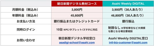 - モニター校に朝日新聞デジタルとAsahi Weekly DIGITALの教材コースIDを一つずつ提供します