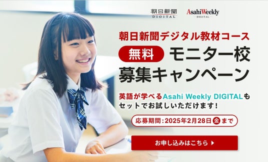 株式会社朝日新聞社(代表取締役社長:角田克)が運営するニュースサイト「朝日新聞デジタル」は2024年10月1日(火)から2025年2月28日(金)まで、全国の中学校と高校を対象にしたモニター校募集キャンペーンを実施します。
