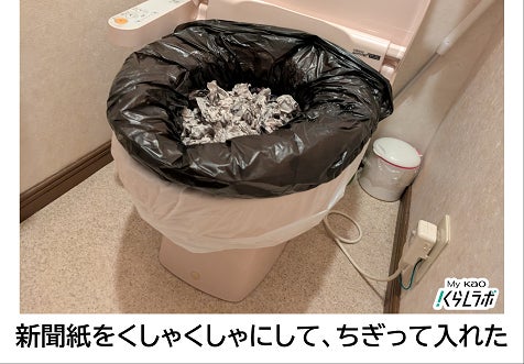 携帯トイレがないときの応急対応として、自宅にあるもので代用できないのか。My Kao くらしラボ編集部で実際に試してみました。