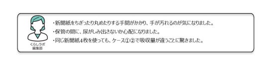 吸わせることはできるが、処理した後の1回分の大きさ、重さが新聞紙に比べて増えがち。