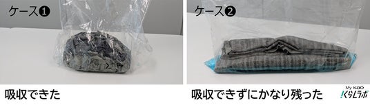 ケース1.:使用後、袋をしばる際に手で揉み込んでいくと尿を吸収させることができた。