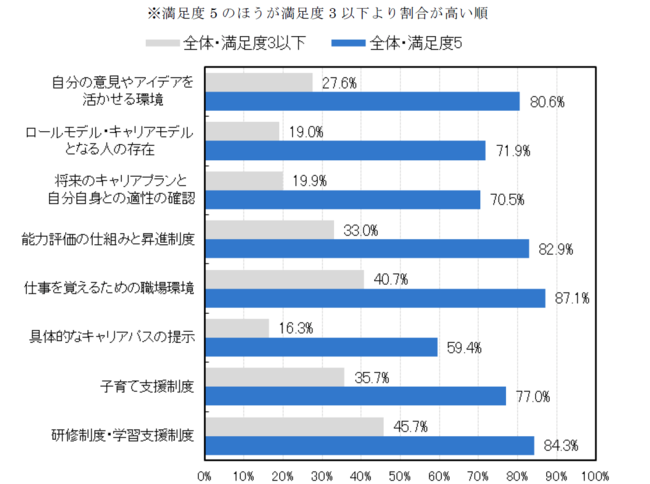満足度が高い新入社員の職場は、「将来のキャリアプラン実現のための環境」が整っている【図4、5】
