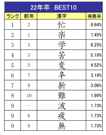 22年卒入社の新入社員の生活を漢字一文字で表すと「忙」【図1】
