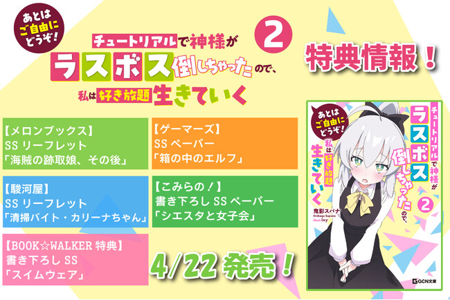 マイクロマガジン社(東京都中央区)は、GCN文庫『あとはご自由にどうぞ!~チュートリアルで神様がラスボス倒しちゃったので、私は好き放題生きていく~ 2』(著:鬼影スパナ/イラスト:Ixy)を4月22日に発売いたします。