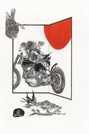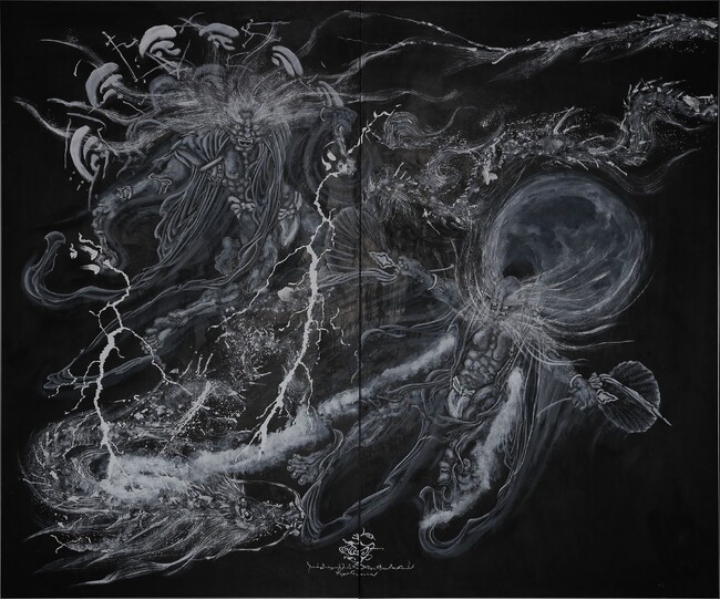 2020年から日本を拠点に水性マジックペンのインクを使った筆で、繊密に、ダイナミックに創作に向き合う。自身の哲学である“無常”を創作意義として、日本美学の根底にある色即是空「虚空」の世界を芸術で表現。河鍋暁斎(かわなべきょうさい)をはじめ、浮世絵など、世界的な江戸絵画蒐集家として本物を見極める観察眼、美意識、美学を併せ持つ。