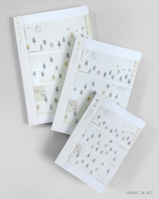 コラージュや水彩の淡い色彩が特徴の紙製品ブランド「ヨハク」と、仕事をはかどらせるステーショナリーブランド「isshoni.」によるコラボレーションノート。全3種。