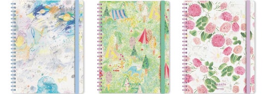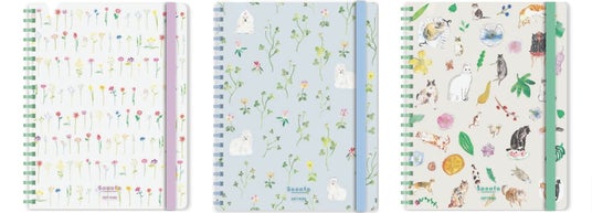 やわらかい樹脂製リングのリングノート「スーファ」と、高知県の印刷会社「本山印刷」のペーパーアイテム専門店「ペーパーメッセージ」がコラボレーションしたデザインノート。全6種。
