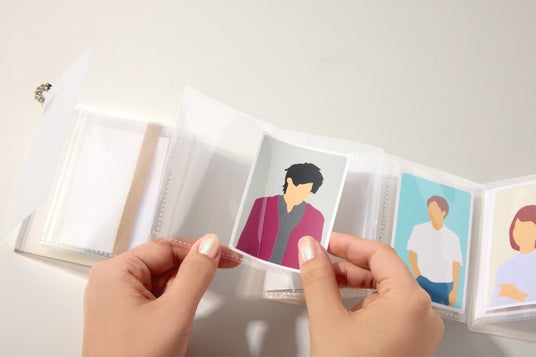 じゃばら式でパッと開いて自立するカードホルダー。じゃばらの谷折り部分にカードを横から差し込む構造で落ちにくく、持ち運びにも便利。