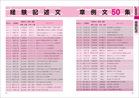 工事種類別に経験記述50例と、過去8年間の学科記述の問題と解説を収録。