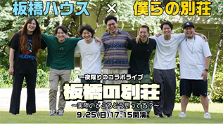 ◆出演者:板橋ハウス(めぞん吉野、軟水つるまる、ピュート竹内) 僕らの別荘(令和ロマン松井ケムリ、天秤シドニー石井、てっせー(作家)、今野一輝)