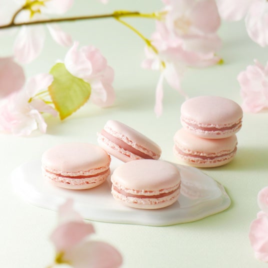 季節の味が楽しめる数量限定のマカロンは桜餡を加えたホワイトチョコガナッシュ。