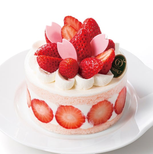 苺をさくら風味のスポンジでサンドした季節のデコレーションケーキ。