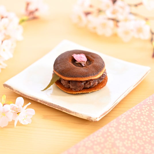 焼くのが難しいという、独自レシピのしっとりとした皮にたっぷりと餡を包んで。春だけの桜化粧のどら焼きです。
