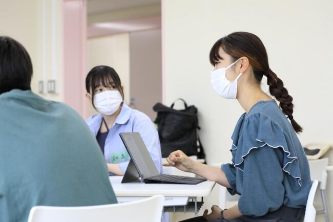 受講生で、このゲームの開発者でもある孝壽真治さん(大学院環境生命自然科学研究科1年)は、「現実の世界でのディスカッションでは、変なことは言えないとか、有意義なことを言わなければならないと考えてしまい、なかなか自分の意見を押し出すことが難しいが、この講義では、キャラクターという存在を挟むことで、自分を出すというハードルを取っ払ってキャラクターとして考えや思いを表現できるので、ディスカッションのトレーニングになると思います。自分自身、コミュニケーションが得意な方ではないので、このゲームを通して自分自身の再発見や振り返りができたと思います」と話してくれました。