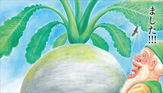 あるひ おじいさんが はたけをたがやしにいくと、おおきなかぶが はえてい……ました!!!