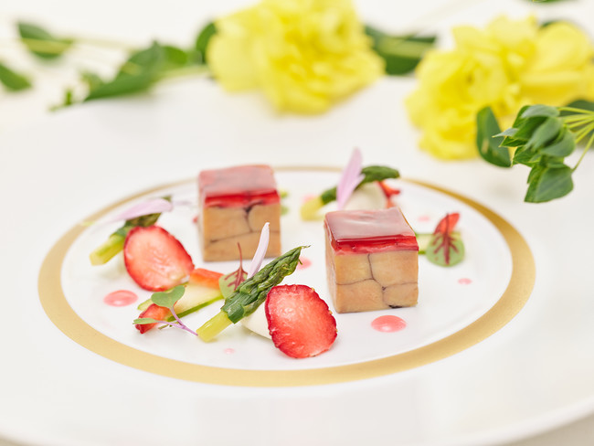 濃厚な味わいのフォアグラを口どけ良く滑らかに仕上げ、ほど良い酸味と繊細な甘味のある赤い果実のエキスを