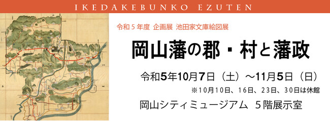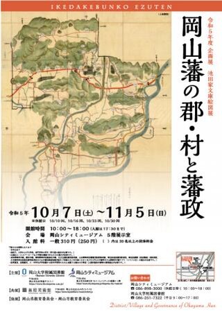 国立大学法人岡山大学(本部:岡山市北区、学長:那須保友)の岡山大学附属図書館では、令和5年度池田家文庫絵図展「岡山藩の郡・村と藩政」を、2023年11月5日(日)までJR岡山駅前の岡山シティミュージアム(岡山市北区)にて開催いたします。