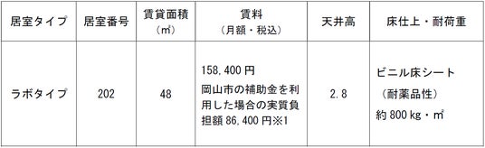 ※1 岡山大学連携型起業家育成施設入居者支援事業の適用を受けた場合の実質負担額
