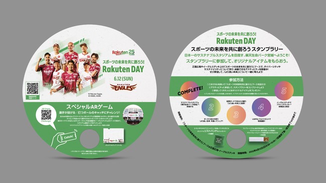 「Rakuten DAY」の特別イベントとして、楽天の考えるスポーツの未来への取り組みがわかるスタンプラリーを開催。参加者には緑色のリストバンドをプレゼントするほか、全4カ所に設置したスタンプをすべて集めると、「ドライフルーツとナッツの詰め合わせ」(※)をプレゼントします。