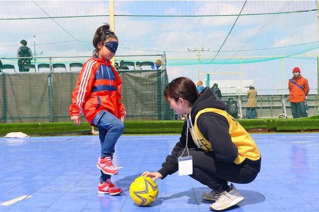 すべての人がスポーツを楽しめる未来を共に創るべく、視覚に障害の持った人でもプレーできるよう考案された「ブラインドサッカー」の体験会を開催します。当日は日本ブラインドサッカー協会から山川 聖立選手(※)、内田 佳選手が来場し、「ブラインドサッカー」の魅力を伝えます。