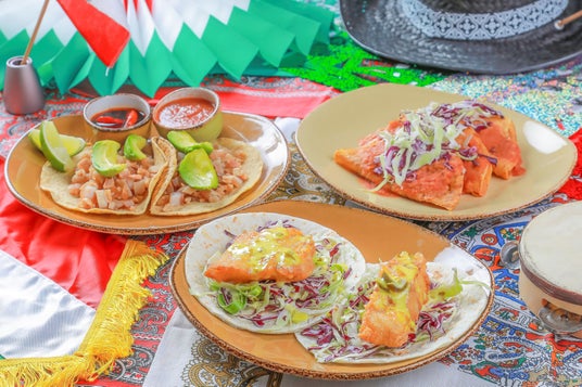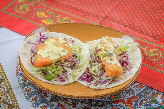 フィッシュタコスタコス・デ・ペスカードメキシコではタコス・デ・ペスカードと呼ばれ、揚げげた魚とサワークリームベースのソースをかけて食べるお子様でも親しみやすいタコス