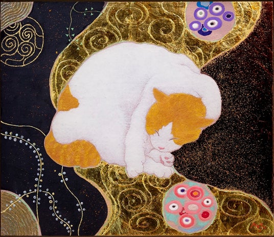 日本画家 溝口まりあが描くのは、一度見たら忘れられない強烈な個性を放つ猫たち。