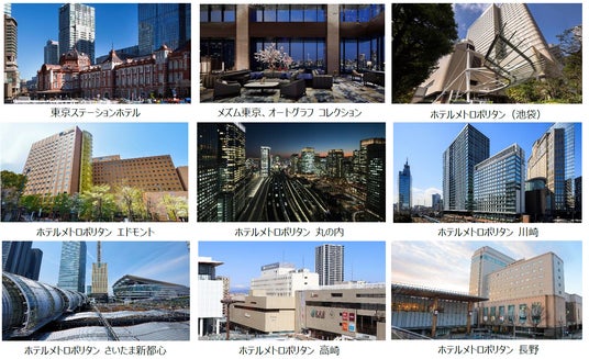 「東京ステーションホテル」「メズム東京、オートグラフ コレクション」「メトロポリタンホテルズ(対象7ホテル)」の9ホテルで実施