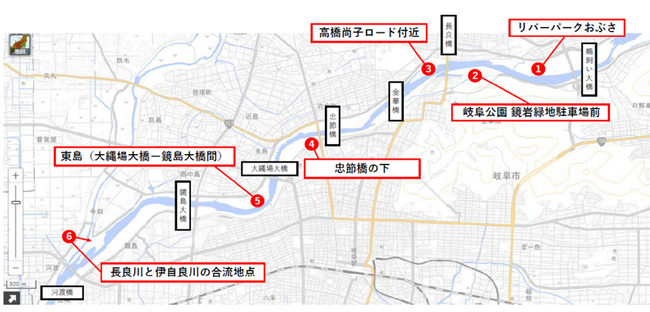 ・開催場所 岐阜市内 長良川下流域にて6地点