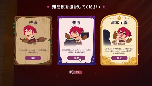 4. 選べる3種類の難易度(簡単な「快適」と、難しい「資本主義」を追加)