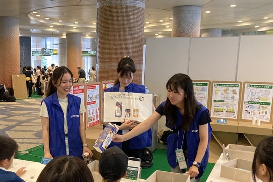 TOPPANは昨年度も本イベントに参加し、紙製飲料容器のリサイクルを体感できるワークショップを企画・運営しました。今年度は、これまで「カートカン(R)(※1)」を始めとした様々な商品パッケージやコミュニケーション施策などで連携してきた森永乳業株式会社(以下 森永乳業)と協力し、環境に配慮したサステナブルパッケージを通じ、子どもたちが楽しみながら環境問題を学べるコンテンツを提供しました。