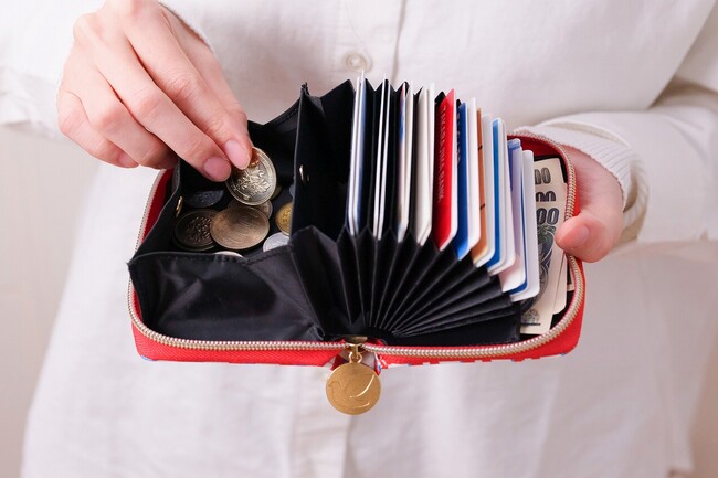 ★ガバッと開くから小銭が取り出しやすい20枚のカードとお札を収納できる!