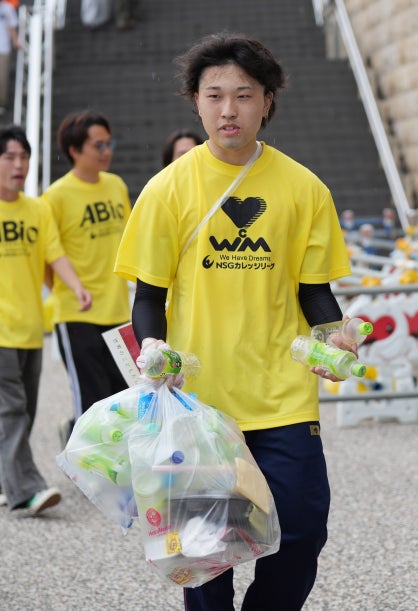 この競技は、8つのチームから総勢80人の選手がスタジアム内を45分間かけて、清掃活動を行い、回収したごみの重さやペットボトルキャップの量を競い合う競技です。観客席を中心とした広いフィールド内での活動は、まさに“運動”と“社会貢献”を掛け合わせたSDGsに沿った挑戦です。