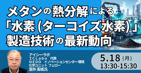 JPI(日本計画研究所)は、アイシーラボ ICLabo 代表 室井 高城 氏を招聘し、メタンの熱分解による「水素(ターコイズ水素)」製造技術の最新動向と工業化の展望について詳説いただくセミナーを開催します。