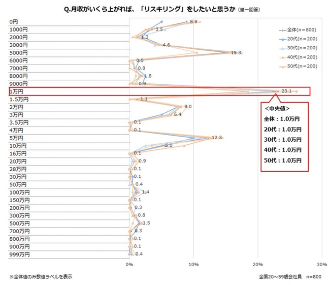 リスキリングをしたいと思える月収の増額は、中央値で1万円【図8】
