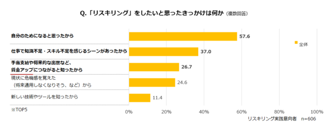 リスキリングに興味を持ったきっかけは「自分のためになる」「知識不足を実感」「賃金アップにつながると知った」など【図5】